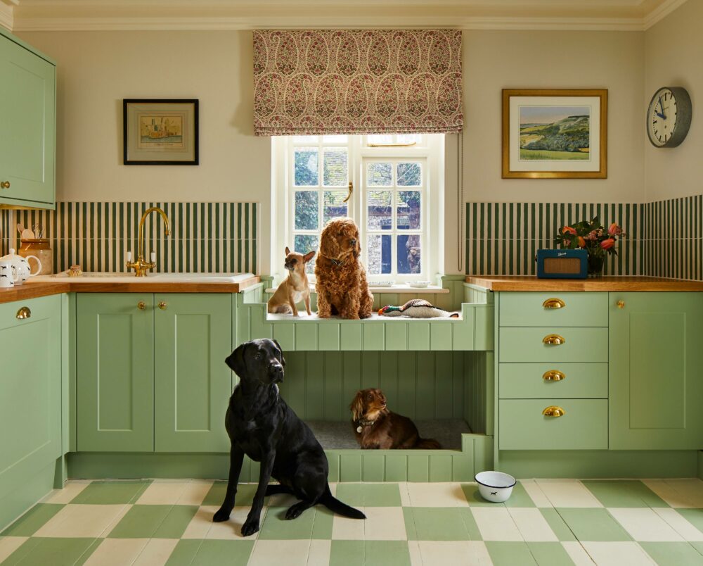 On the Goodwood Estate in West Sussex, cottages available to rent for a bucolic break now come furnished with dog beds. Yet these are not simply piles of amorphous matting, but beautiful custom bunks built into the kitchen cabinetry, painted to match the pale green woodwork. It’s no surprise when you realise that the estate hosts an annual festival called Goodwoof, celebrating all things canine. Ever since its famed Kennels were built in 1787 to house the 3rd Duke of Richmond’s prized foxhounds, Goodwood has given a great deal of thought to the comfort of its canine chums. And now doggy design countrywide seems to be getting an upgrade, too.