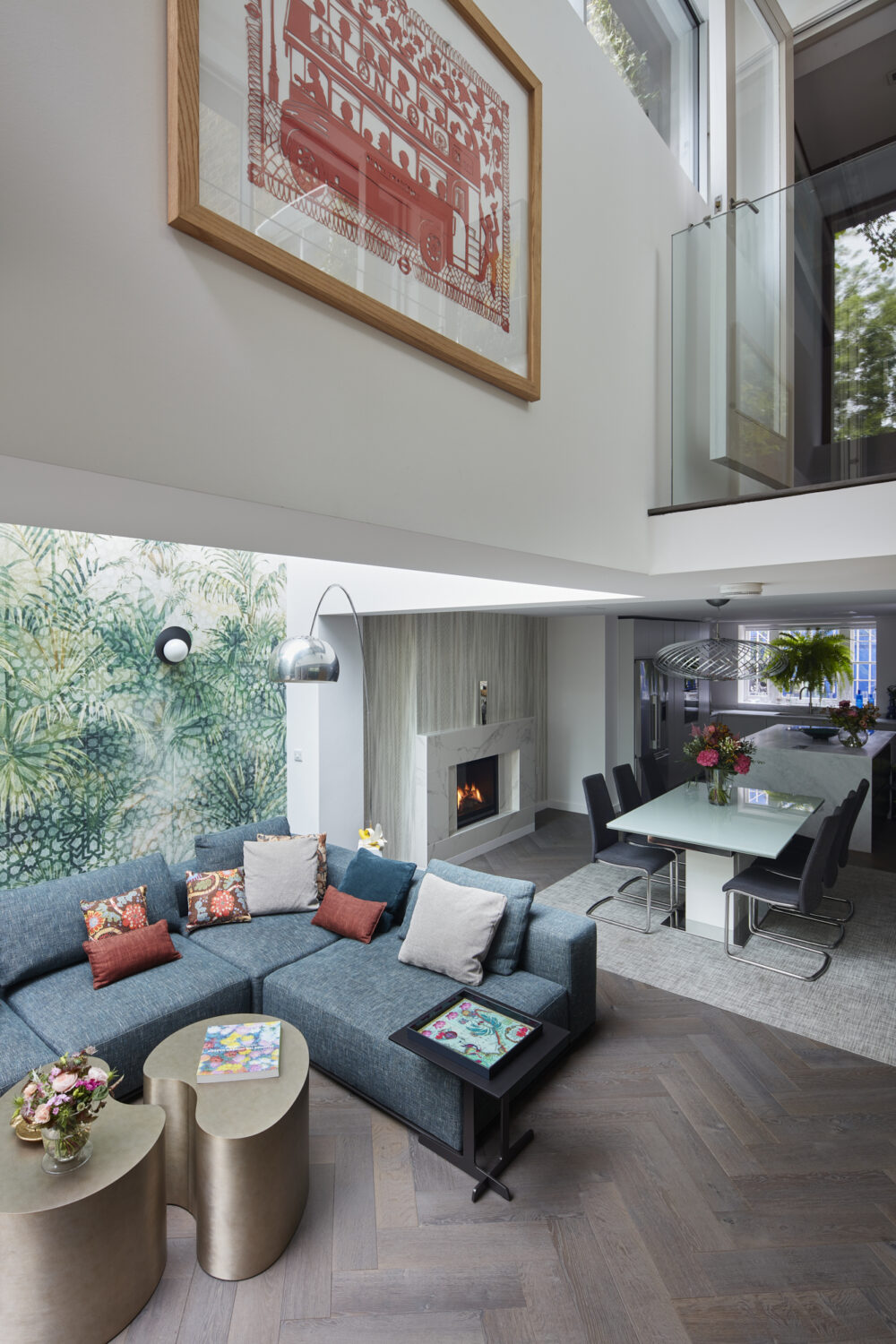 Next, balance out the practicality with haute luxe tailored to your family. An L-shaped sofa is a good choice, along with a large custom-made ottoman. (Try Sarah Beech Ottomans for bold bespoke pieces.) Incorporating back-to-back sofas and furniture at different heights will create “zones” for different activities. “It’s a clever yet easy way to demarcate areas for relaxation, playing games or doing homework,” says Kelly Cinnamond-Santos, senior interior designer at Morpheus & Co, whose projects include branded residences in the Loire Valley and new mews houses in Belgravia. “A high table with chairs or stools works well for eating and doing homework, while lower, more comfortable seating and coffee tables are ideal for playing games and relaxing.”