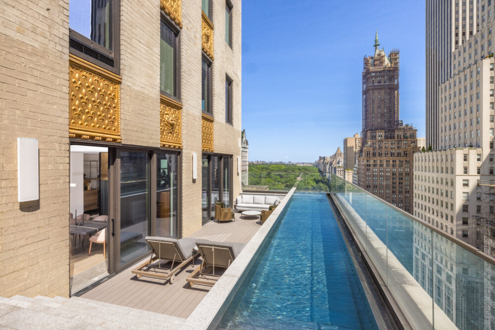 The Aman Residences is an ultra-exclusive collection of only 22 private homes. This exquisite three-bedroom, three-and-a-half-bathroom residence spans 3,746 square feet, offering unmatched sophistication and privacy. The 1,058-square-foot terrace, complete with a private pool and jacuzzi, presents stunning views of Central Park, creating an idyllic urban sanctuary.