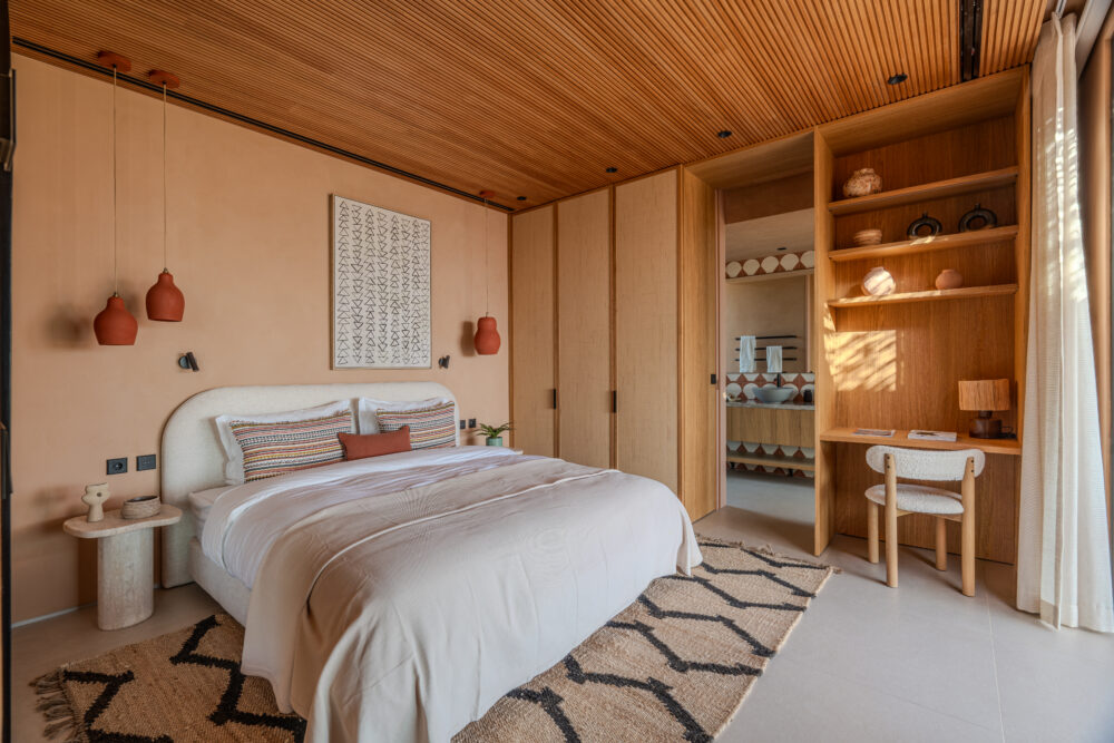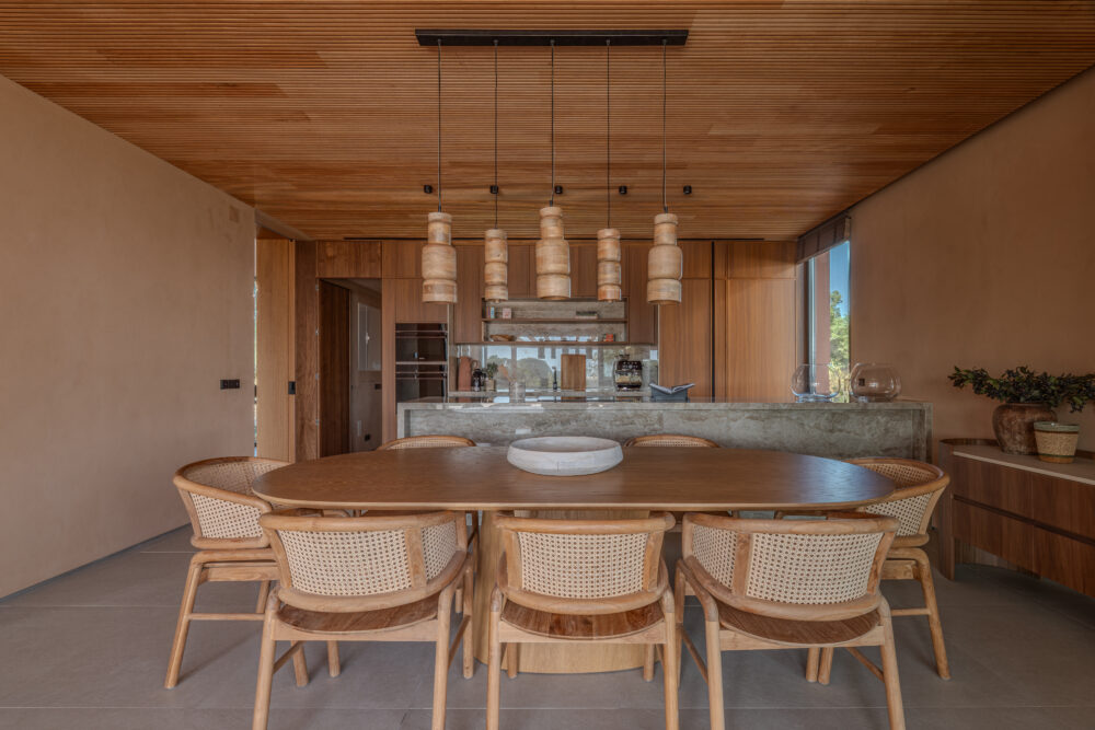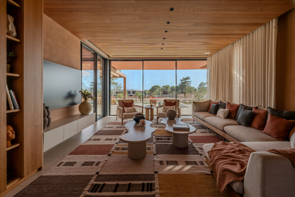 The Terracotta Villa balances privacy and openness with a warm stucco design, large garden-facing windows, and terraces that blend seamlessly into the forested landscape.
