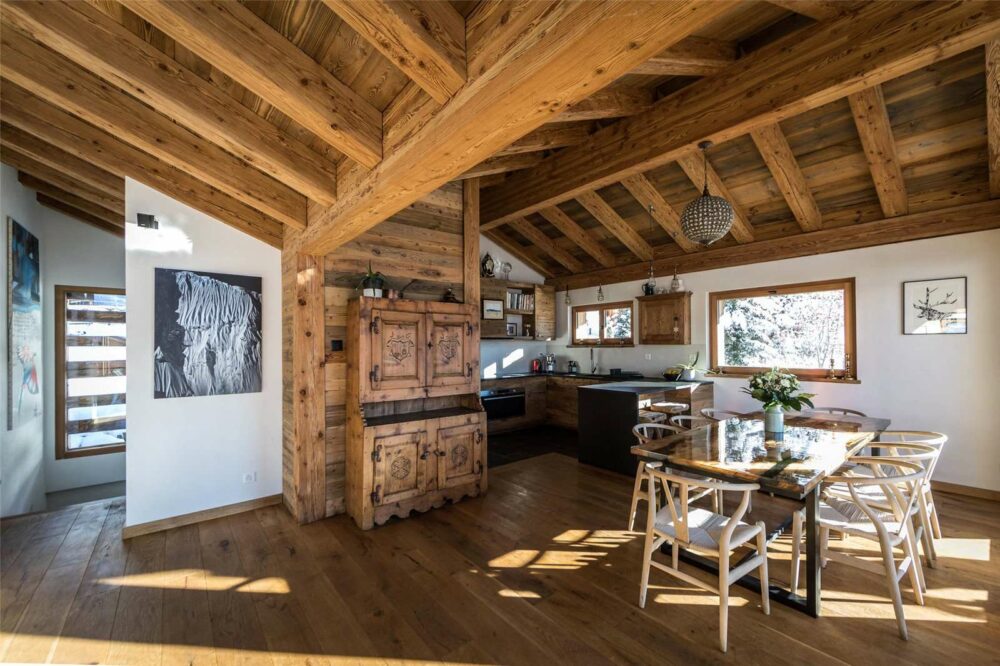 This gorgeous chalet was renovated in 2020 using exquisite old refurbished wood and stone, to create the perfect mountain hideaway. The decoration is alpine-chic and has been designed to be your home away from home.
