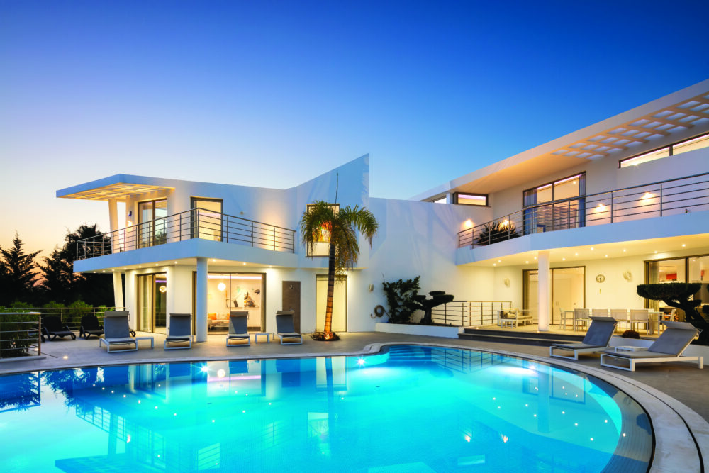 - This large 6-bedroom property is striking in design from every angle with open plan living areas that seamlessly lead on from each other. With floor to ceiling windows, clean straight lines and double height ceilings, there is a sense of space with plenty of natural light throughout the villa. The lower ground floor boasts a one bedroom guest apartment which benefits from direct access to the garden. The ample sized basement areas also feature a temperature controlled wine cellar, spa with a sauna and Turkish bath, a stunning cinema room, gym and a large garage. The exteriors provide multiple covered terraces, a fantastic barbecue area for alfresco dining and tropical landscaped gardens overlooking the golf course.