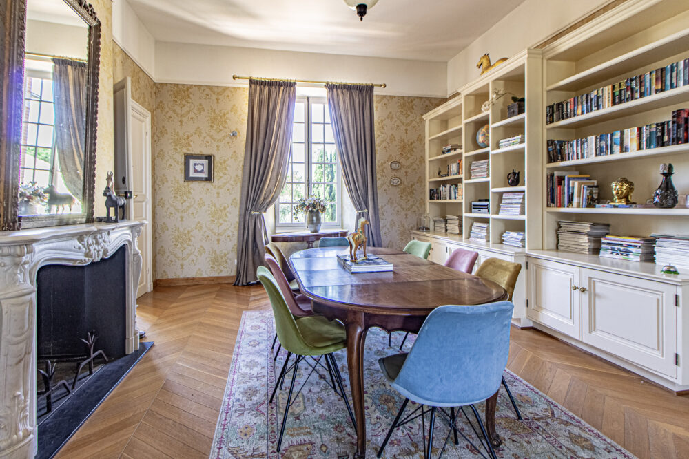 The exteriors are just like the interiors, sober and perfectly maintained. They include a heated swimming pool with a fully-equipped pool house (40 m² offering a fully-equipped kitchen, a bar and a dining area). Tennis court. Manège, 3Ha of fenced land for horses with one of the outbuildings offering 5 horse boxes with large storage area. Garage, workshop etc. and very large barn ideal for a car collector. Magnificent, partly wooded parklands (trees of various species). Quiet but not isolated, this is a unique estate.