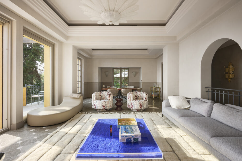 Inside, the living areas — reception room and dining room — open onto a vast panoramic terrace facing the sea, featuring elegant French natural stone floors. The five spacious bedrooms each have their own dressing room and en suite bathroom, enhanced by high-quality solid wood flooring.